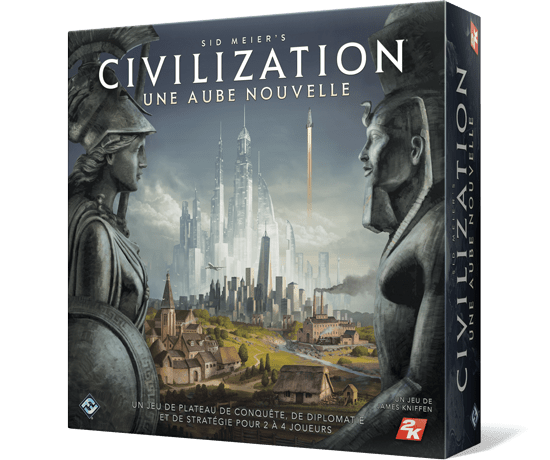 Sid Meier’s Civilization : Une Aube Nouvelle transpose l’un des plus grands succès du jeu vidéo jamais édité en jeu de stratégie sur plateau. Proposant des parties au rythme soutenu grâce à des règles facilement assimilables, cette adaptation propulse les joueurs à la tête d’une nation lancée dans une course effrénée pour obtenir des territoires, des technologies, et des Merveilles capables de changer le cours de son Histoire.
